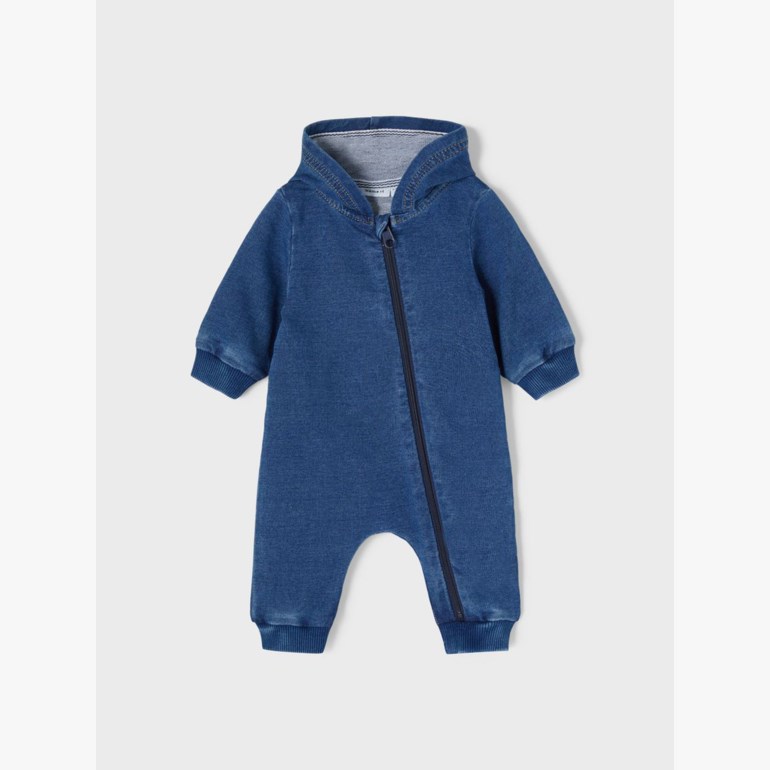 Vår kule denimdress med hette er ikke annet enn perfekt for å skape en trendy look. Den praktiske glidelåsen gjør det enkelt å kle på den lille, og de myke ribbemansjettene og faldene sørger for en behagelig følelse på huden.