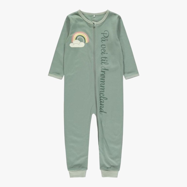 Kjempesøt pysjamas fra Name it. Glidelås for enkel av- og påkledning. Føtter opp til str 86. Materiale: 100% Bomull