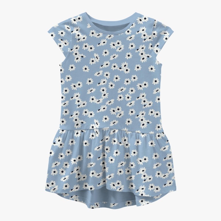 Kortermet kjole i økologisk bomull, med koselig, heldekkende print og rund hals.