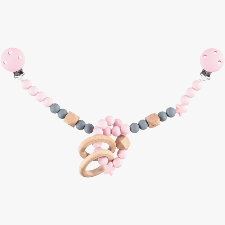 - Sansestimulering: Myke silikon- og treperler fremmer babyens utvikling av gripeevner.