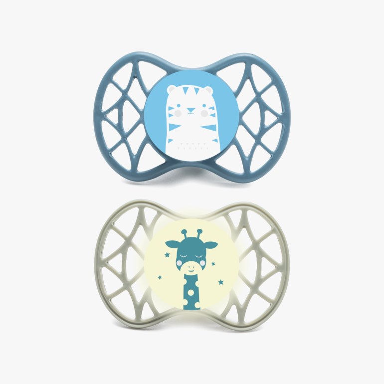 - Glow in the Dark: Lyser i mørket, slik at smokken er enkel å finne uten å måtte slå på lys om natten.