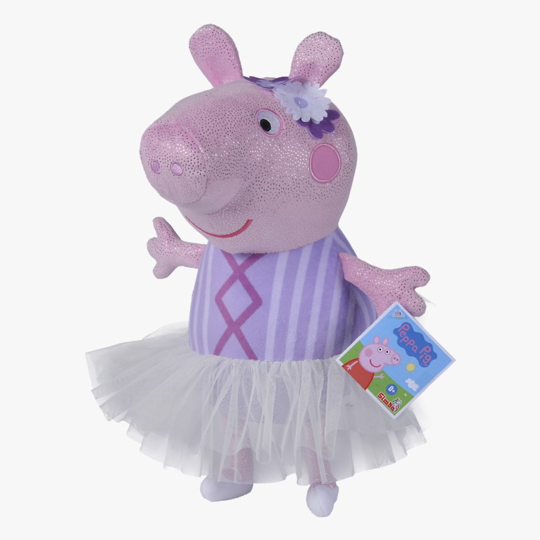 Dette Peppa Gris kosedyret glitrer og er kledd i søte ballerinaklær med tyllskjørt, ballerina sko og har blomster på hodet. Kosedyret er 28 cm langt og er en kosete følgesvenn som kan tas hvor som helst. Passer barn fra de første månedene av livet.