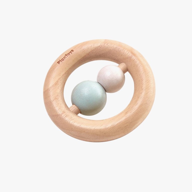 Rangle i naturlig tre og pastellfarger som forbedrer barnets motoriske ferdigheter. Den er lett å holde i og riste. - Produsert i naturlig gummitre og fargene er organiske fruktfarger. - Limet er giftfritt og miljøvennlig. - Passer barn 4 måneder+ - Alle PlanToys produkter er EN71-godkjent, som er den europeiske standarden for leker.