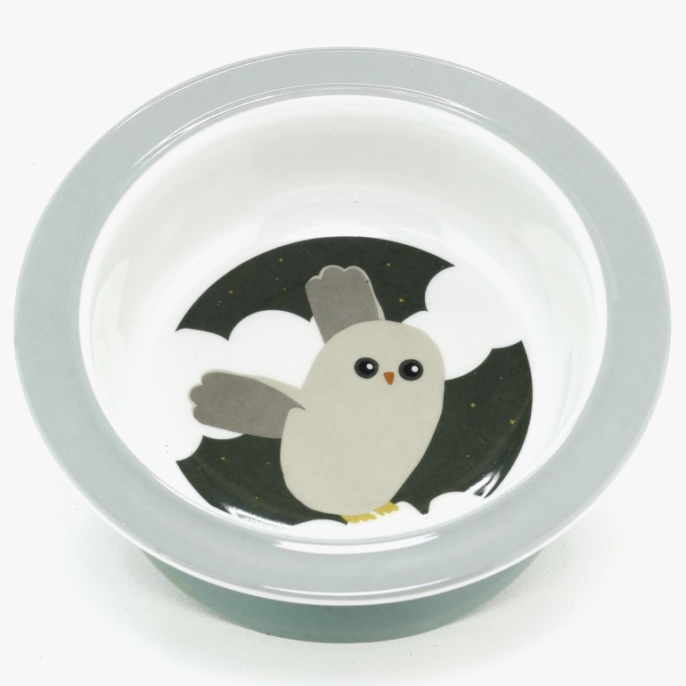 Slitesterk sugekoppplate i ripebestandig melaminplast. Tåler oppvaskmaskin i øvre hylle. Passer for barn fra 6 måneder.