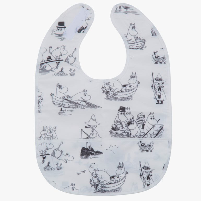 Denne praktiske smekken med Mumin-motiv fra serien "Skärgård" er designet for å gjøre måltidene enklere og mindre sølete. Smekken har en oppsamlingslomme for søl, en vannavvisende overflate og er laget av 100 % Oeko-Tex-sertifisert polyester. Borrelåsremmen sørger for at smekken sitter godt under bruk, mens det slitesterke materialet tåler maskinvask for enkel vedlikehold.