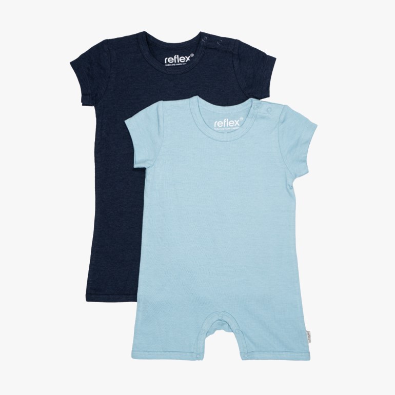 Myk og lett hel pyjamas med korte ermer og korte ben, laget av 100% økologisk bomull.