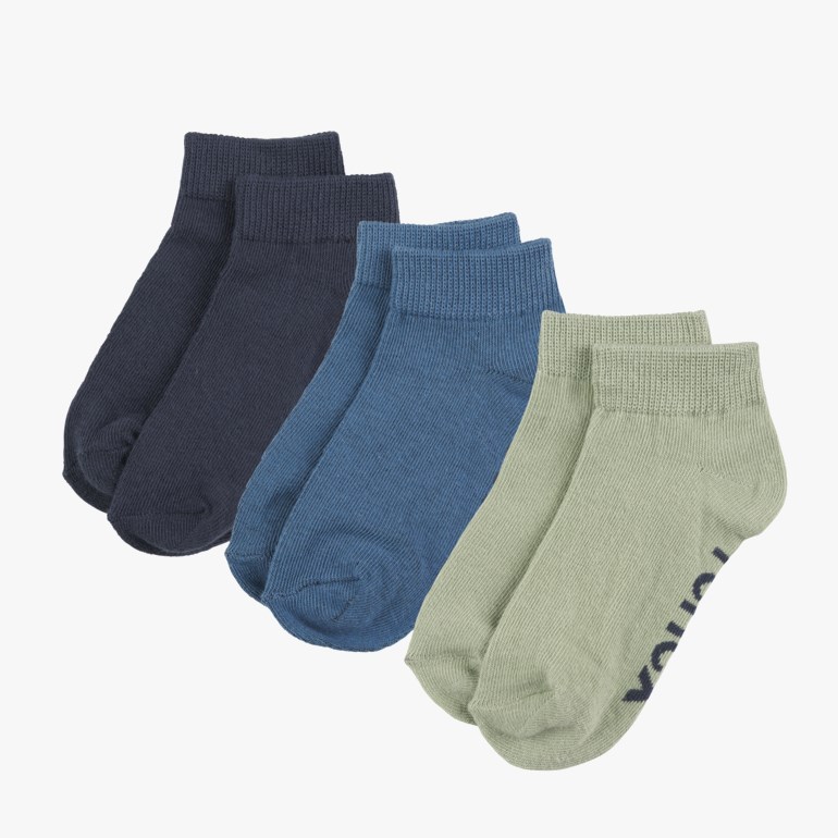 Lave ankelsokker i myk, økologisk bomull. Innsydd elastikk og ribbestrikk i ankel for bedre passform. Selges i 3-pakning i 3 fargevarianter. Laget av deilig, myk og økologisk bomull. Produktet er GOTS-sertifisert. Str 22-24 – 34-36. Materiale: 76% økologisk bomull, 21% polyamid, 3% elastan. Vaskeanvisning: Maskinvask 40 grader. For å ivareta både plagget og miljøet så godt som mulig, anbefaler vi å minimere antall vask så mye man kan. Vask gjerne av flekker med en klut og heng plagget til lufting når nødvendig. Dette vil forlenge levetiden på plagget, minimere energibruk samt skåne miljøet for unødvendig utslipp.