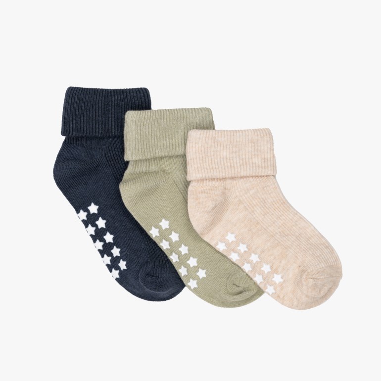 Gode hverdagssokker med antiskli i myk, økologisk bomull.