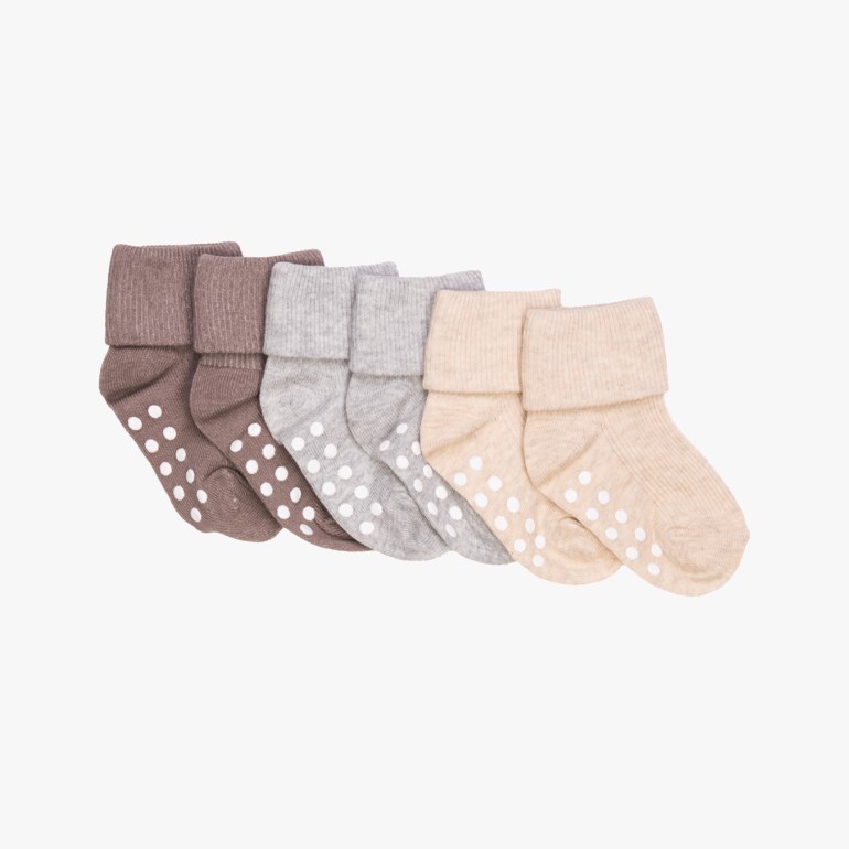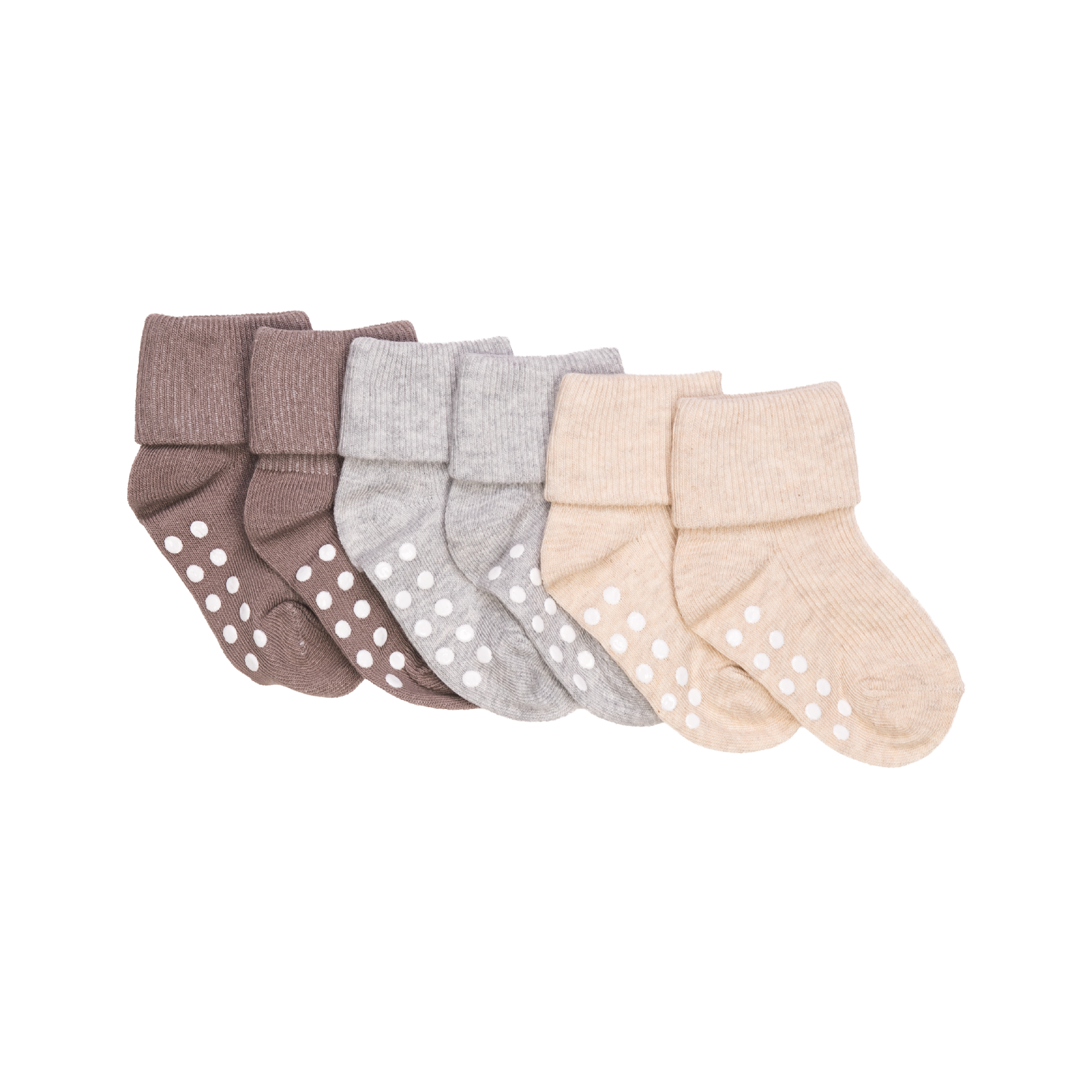 Disse myke babysokkene med antiskli er laget for aktive små føtter som utforsker verden i sitt eget tempo. Den økologiske bomullskvaliteten føles behagelig mot huden og gir god komfort gjennom hele dagen, enten barnet krabber, reiser seg eller tar sine første steg.