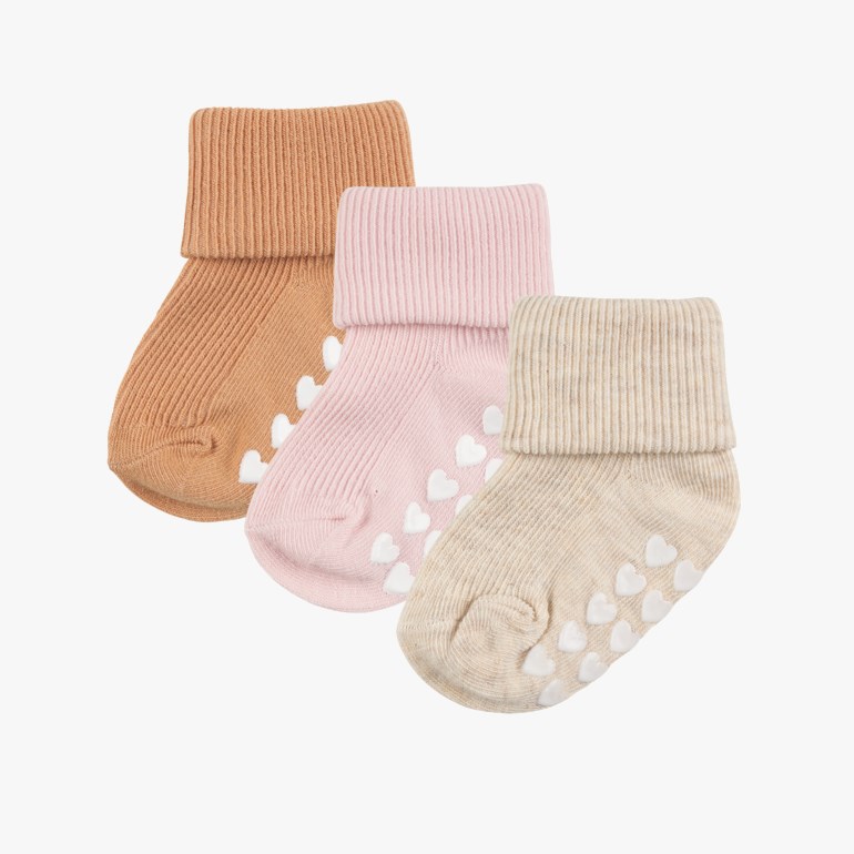 Supre hverdagssokker med antiskli i myk, økologisk bomull. Funksjonell og god antiskli under sålen. Ribbestrikket på foten og i ankel for bedre passform. Nedbrettbar. Selges i 3-pakning i 3 fargevarianter. Laget av deilig, myk og økologisk bomull. Produktet er GOTS-sertifisert. Str 16-18 – 22-24. Materiale: 76% økologisk bomull, 21% polyamid, 3% elastan. Vaskeanvisning: Maskinvask 40 grader. For å ivareta både plagget og miljøet så godt som mulig, anbefaler vi å minimere antall vask så mye man kan. Vask gjerne av flekker med en klut og heng plagget til lufting når nødvendig. Dette vil forlenge levetiden på plagget, minimere energibruk samt skåne miljøet for unødvendig utslipp.
