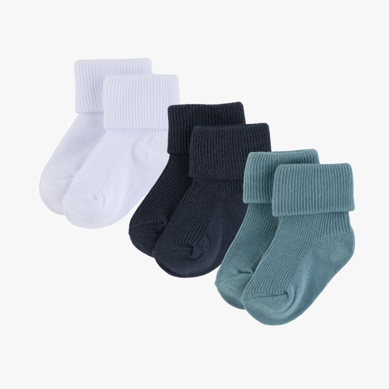 Ribbestrikket på foten og i ankel for bedre passform. 3pk i 3 fargevarianter. Nedbrettbar. GOTS & Økotex-sertifisert. Materiale: 76% økologisk bomull, 21% polyamid, 3% elastan.
