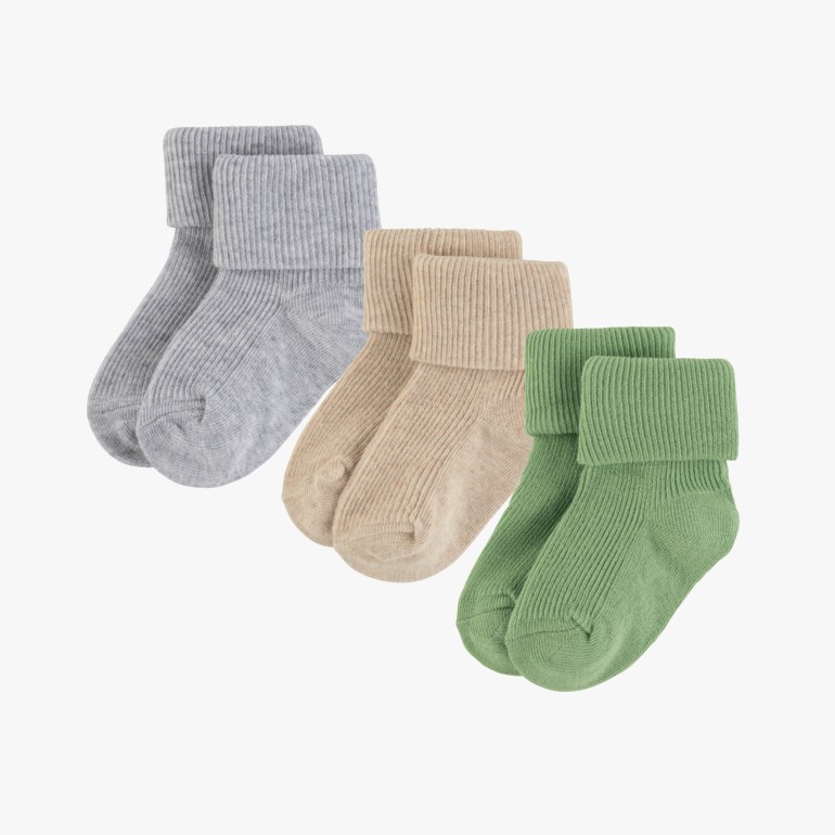 Ribbestrikket på foten og i ankel for bedre passform. 3pk i 3 fargevarianter. Nedbrettbar. GOTS & Økotex-sertifisert. Materiale: 76% økologisk bomull, 21% polyamid, 3% elastan.