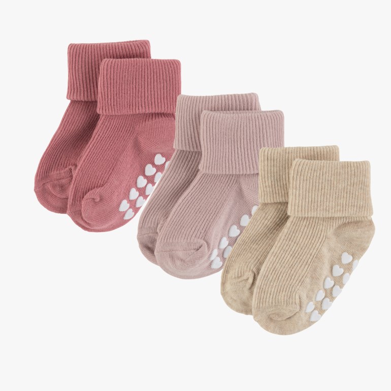 Funksjonell og god antiskli under sålen. Ribbestrikket på foten og i ankel for bedre passform. Nedbrettbar. GOTS & Økotex-sertifisert. Str 16-18 – 22-24. Materiale: 76% økologisk bomull, 21% polyamid, 3% elastan.