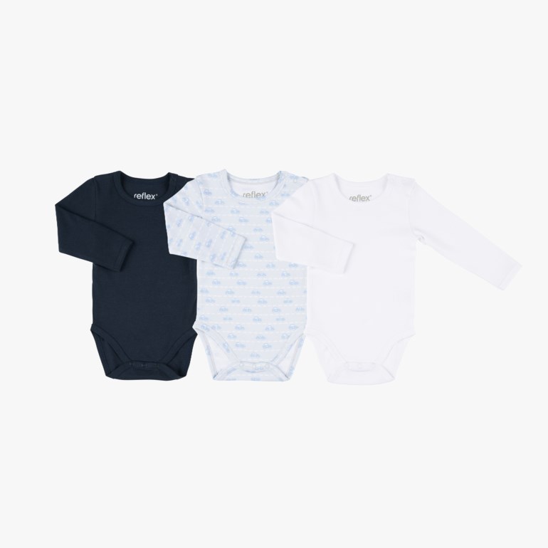 Myk body i 3-pakning laget i 100% økologisk bomull. Åpning på ene skulderen og i skrittet med trykknapper. Produktene er Økotex- og GOTS-sertifisert.