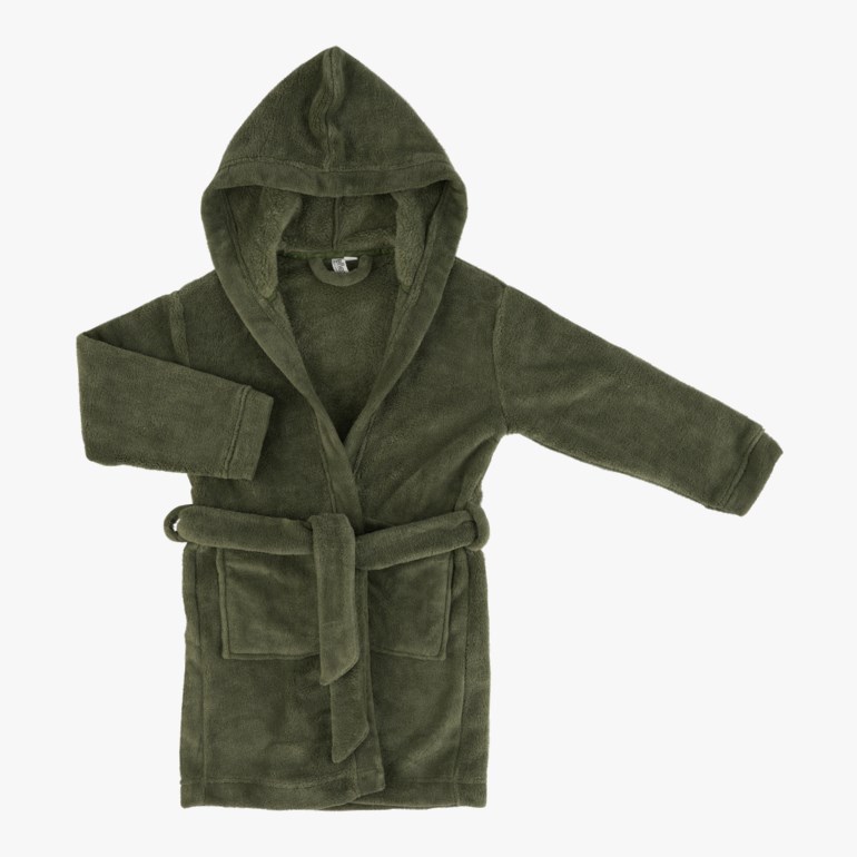 Supermyk og behagelig badekåpe, perfekt til bruk ved bassenget, på stranden eller til morgen- og kveldsstunden hjemme. Badekåpen har en stor og god hette, knytebelte i midjen og to lommer i front. Str. 2-4 år – 8-10 år. Materiale: 100% polyester. For å ivareta både plagget og miljøet så godt som mulig anbefaler vi å minimere antall vask så mye man kan. Vask gjerne av flekker med en klut og heng plagget til lufting når nødvendig. Dette vil forlenge levetiden på plagget, minimere energibruk samt skåne miljøet for unødvendig utslipp