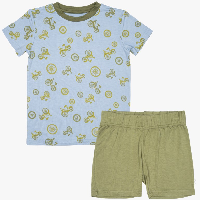 - Settet består av helprintet trøye med korte ermer og matchende ensfarget shorts med strikk i livet.