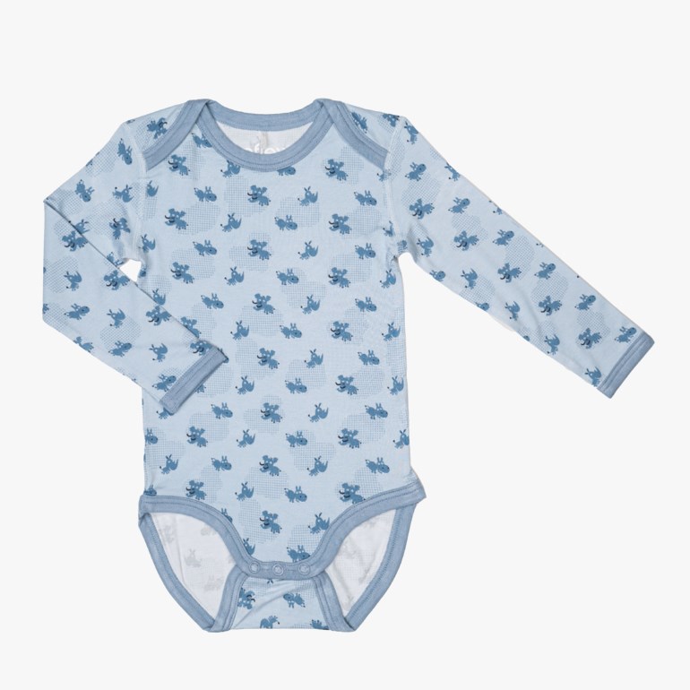 - Bodyen har konvoluttåpning for hodet og åpning med trykknapper i skrittet. Matcher de andre produktene i Bamboo-serien.