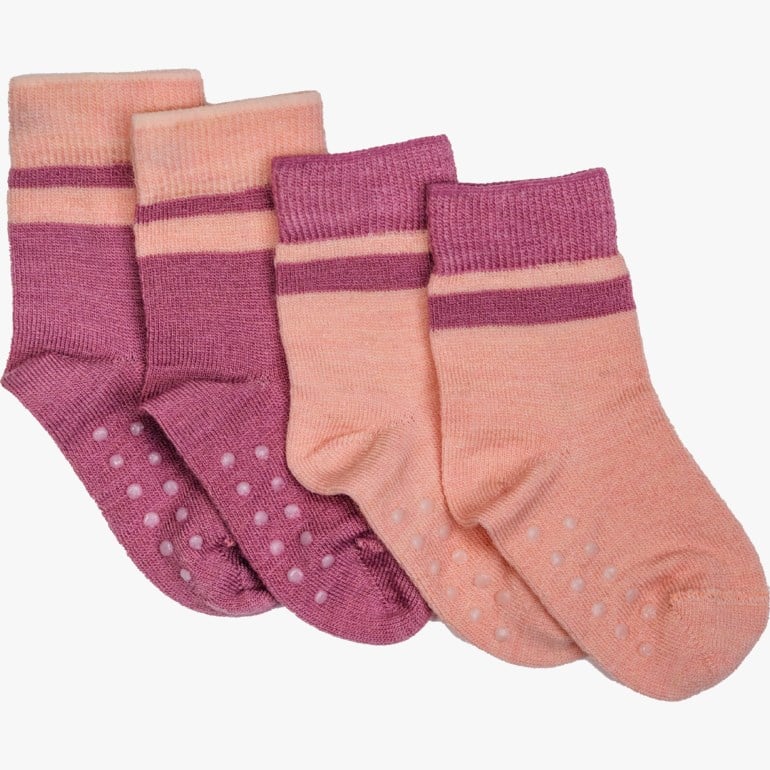 Bamle antisklisokker er laget med bambusviskose på innsiden og merinoull på utsiden – en myk kombinasjon som kjennes behagelig mot huden og samtidig holder små føtter varme.