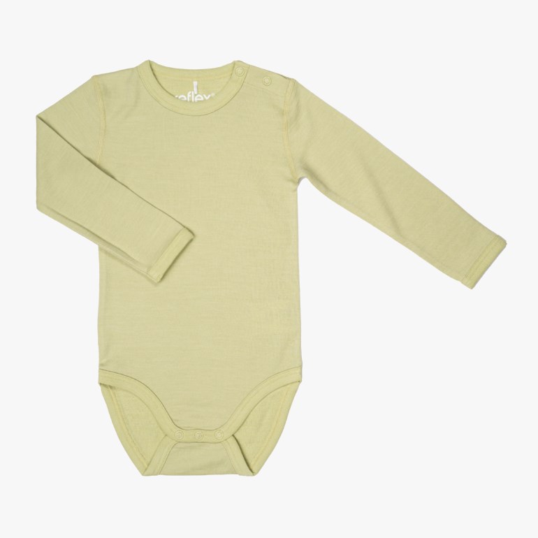 Ensfarget body med bambusviskose på innsiden og sertifisert merinoull på utsiden. Denne kombinasjonen av naturmaterialer beskytter sensitiv og tørr hud mot irritasjon samtidig som man får godt utbytte av ullens gode egenskaper.