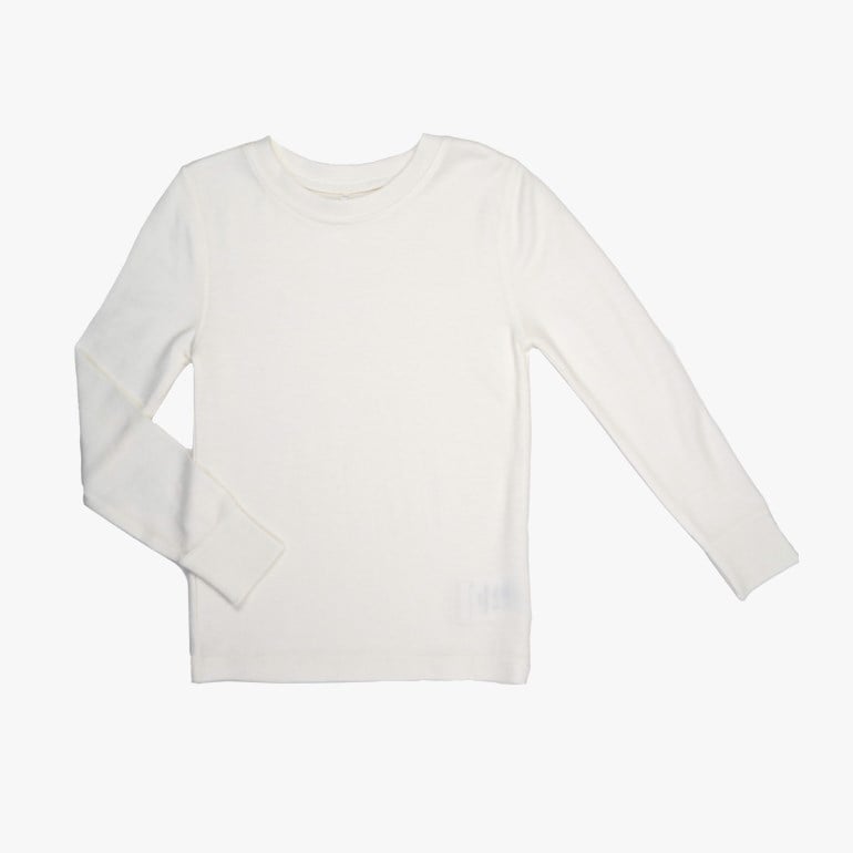 Ensfarget, langermet trøye med bambusviskose på innsiden og merinoull på utsiden. Denne kombinasjonen av materialer beskytter sensitiv og tørr hud mot irritasjon samtidig som man får godt utbytte av ullens gode egenskaper. Alle hals/ermer/fotåpninger i Bris-serien er laget av bomull slik at man unngår ull inn mot barnets hud.