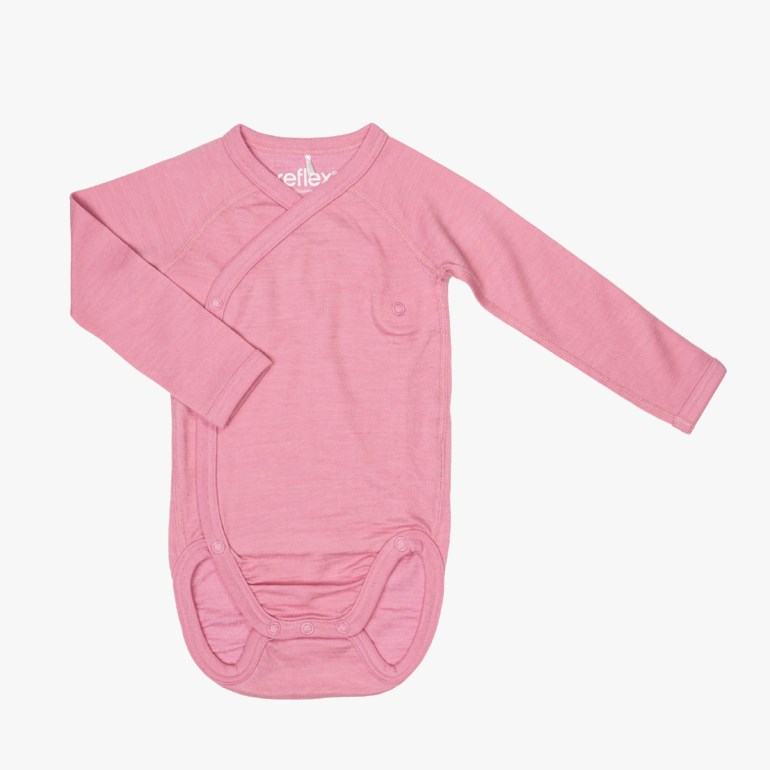 Ensfarget omslagsbody med bambusviskose på innsiden og sertifisert merinoull på utsiden. Denne kombinasjonen av naturmaterialer beskytter sensitiv og tørr hud mot irritasjon, samtidig som man får godt utbytte av ullens gode egenskaper.