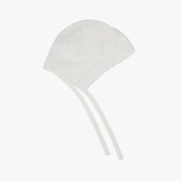Gir barn med sensitiv og/eller tørr hud, godt utbytte av ullens lune egenskaper samtidig som bambus beskytter huden mot irritasjon. Alle plaggets detaljer som vender inn mot barnets hud, er bambus. Transporterer bort fuktighet og tørker hurtig. Produktet er Økotex-sertifisert. Ullen er mulesing-fri. Str. 35-37cm nyfødt – 43-45cm 6-12 mnd. Materiale: 50% merinoull, 45% viskose av bambus, 5% polyamid. Vaskeanvisning: Maskinvask 30 grader, ullprogram. For å ivareta både plagget og miljøet så godt som mulig, anbefaler vi å minimere antall vask så mye man kan. Vask gjerne av flekker med en klut og heng plagget til lufting når nødvendig. Dette vil forlenge levetiden på plagget, minimere energibruk samt skåne miljøet for unødvendig utslipp. Blondeluen er en del av vårens nyheter og er fra Reflex sin SS21-kolleksjon.