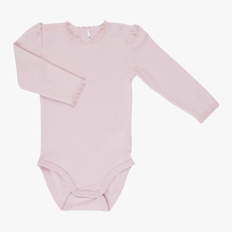 Ensfarget body med blonder med bambusviskose på innsiden og sertifisert merinoull på utsiden. Denne kombinasjonen av naturmaterialer beskytter sensitiv og tørr hud mot irritasjon samtidig som man får godt utbytte av ullens gode egenskaper.