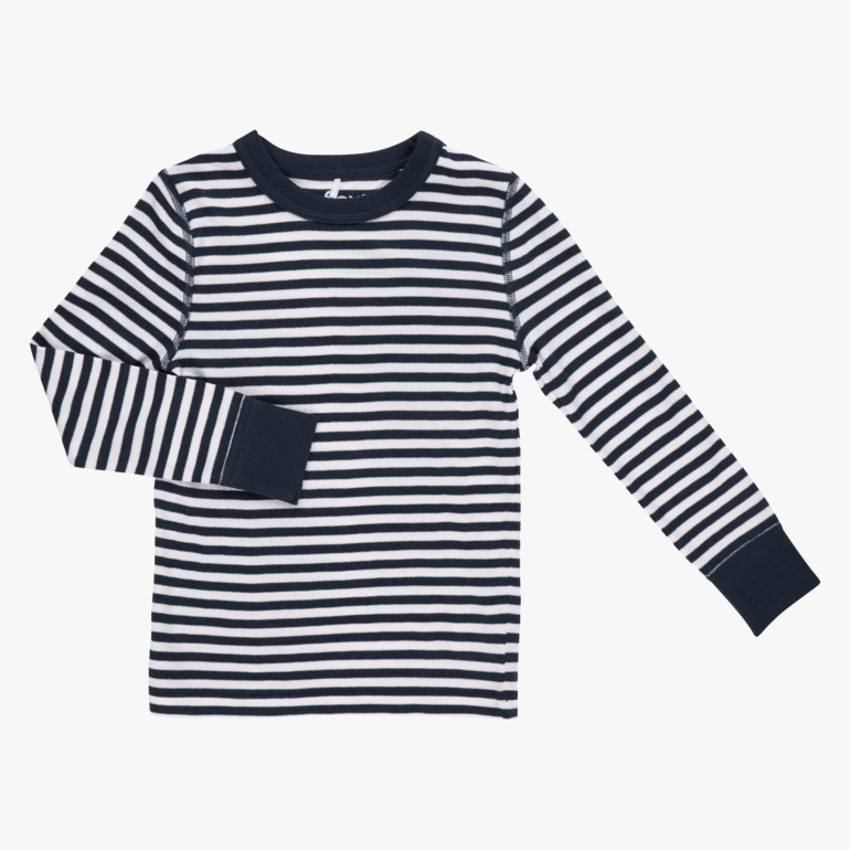 Stripet, langermet trøye med bambus på innsiden og ull på utsiden. Denne kombinasjonen av naturmaterialer beskytter sensitiv og tørr hud mot irritasjon samtidig som man får godt utbytte av ullens gode egenskaper.