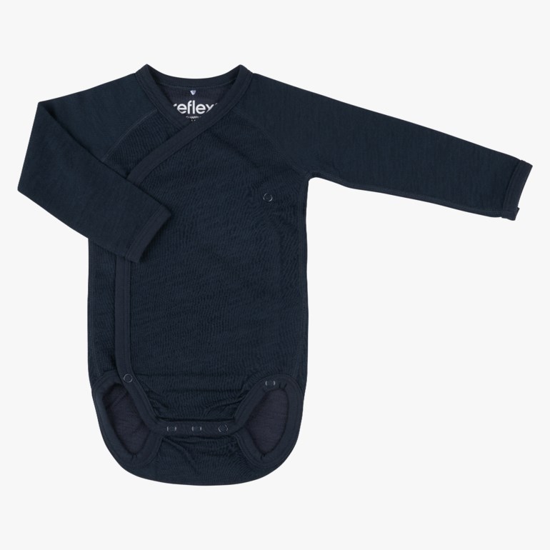 Kombinerer ullens fantastiske egenskaper med bambusviskosens myke og behagelige komfort. Gir barn med sensitiv og/eller tørr hud, godt utbytte av ullens lune egenskaper samtidig som bambus beskytter huden mot irritasjon. Alle plaggets detaljer som vender inn mot barnets hud, er bambus. Transporterer bort fuktighet og tørker hurtig. Åpning med trykknapper på siden for enkel av- og påkledning. Produktet er Økotex-sertifisert. Ullen er mulesing-fri. Str 44cm prematur – 74cm 9 mnd. Materiale: 50% merinoull, 45% bambusviskose, 5% polyamid Vaskeanvisning: Maskinvask 30 grader, ullprogram. For å ivareta både plagget og miljøet så godt som mulig, anbefaler vi å minimere antall vask så mye man kan. Vask gjerne av flekker med en klut og heng plagget til lufting når nødvendig. Dette vil forlenge levetiden på plagget, minimere energibruk samt skåne miljøet for unødvendig utslipp. Plagget er en del av vårens nyheter og er fra Reflex sin SS20-kolleksjon.