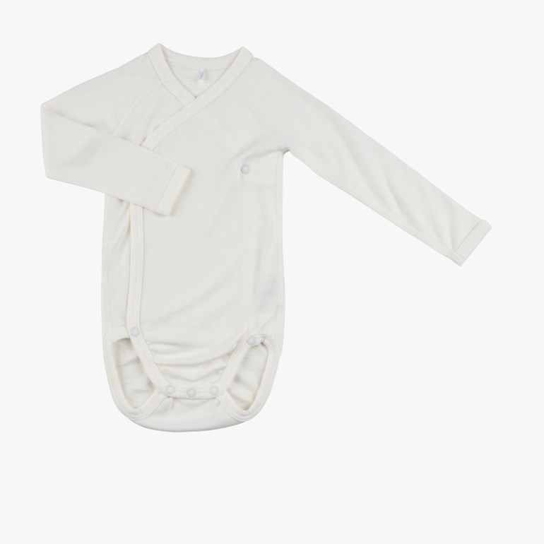 Ensfarget omslagsbody med bambusviskose på innsiden og ull på utsiden. Denne kombinasjonen av naturmaterialer beskytter sensitiv og tørr hud mot irritasjon samtidig som man får godt utbytte av ullens gode egenskaper. Gir barn med sensitiv og/eller tørr hud, godt utbytte av ullens lune egenskaper samtidig som bambusviskose beskytter huden mot irritasjon-