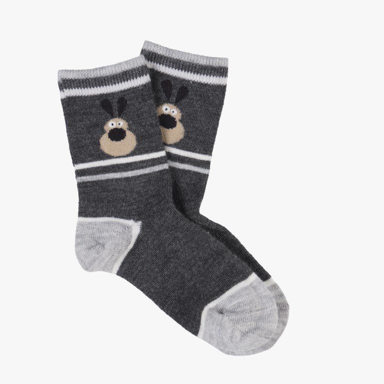 Varme, myke og kløfrie ullsokker med dyremotiv.