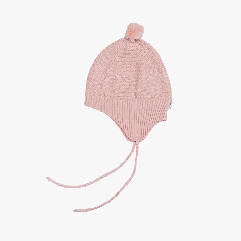 Denne lune og myke luen er laget i en lett mønsterstrikk av viskose og økologisk bomull. Øreklaffer og snøring sikrer god passform og ekstra varme på kjølige dager.