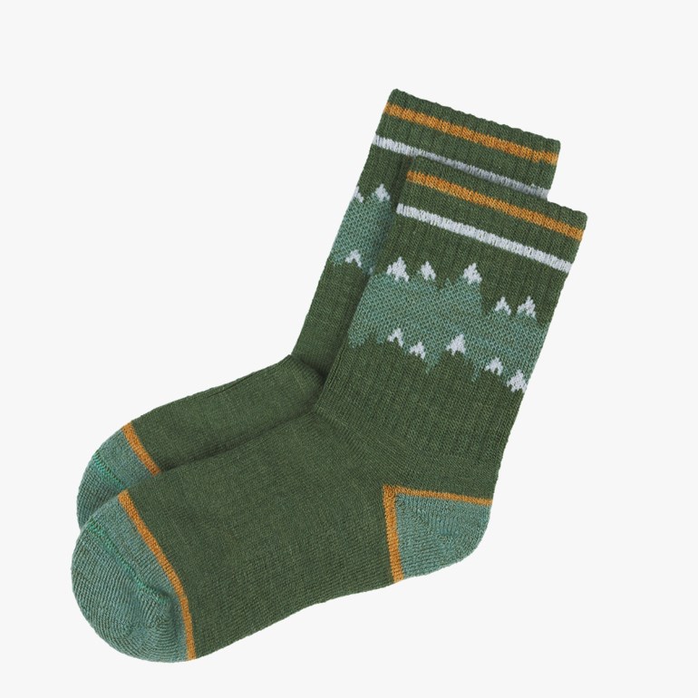 Varme og myke ullsokker med fjellmotiv. Ekstra frottèsåle gir bedre isolasjon, og forsterkning i hæl og tær minimerer slitasje. Ribbestrikket ankelparti sikrer en ekstra god passform.