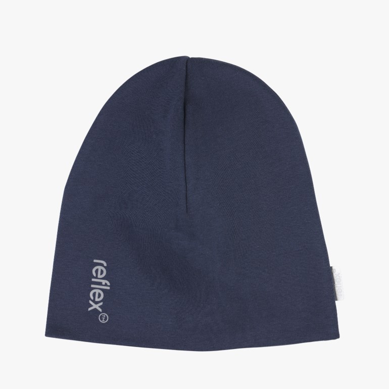 Ensfarget, lett lue i økologisk bomull med reflekterende logo.