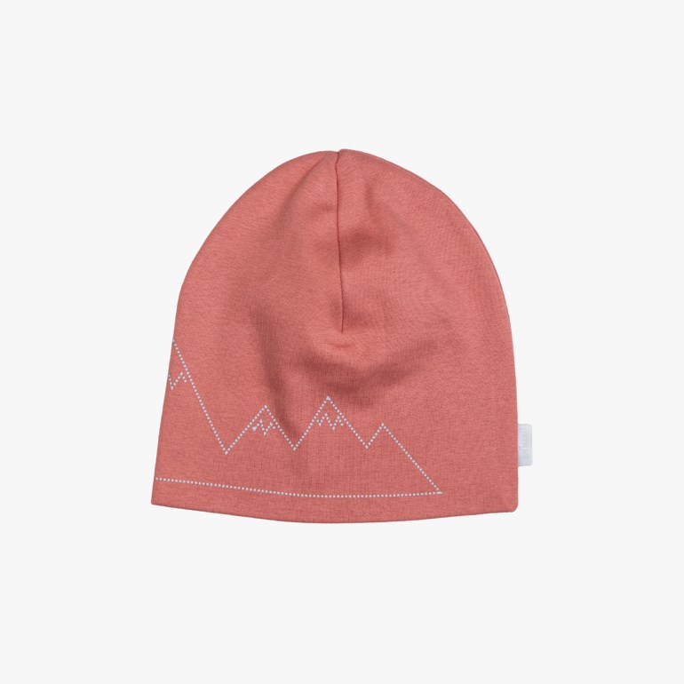 Fløyen lue er laget i økologisk bomull med et reflekterende print. Den to-lags kvaliteten gir god passform og holdbarhet, og lua gir komfort og beskyttelse for barn på kalde dager.