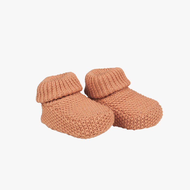 Nydelige formstrikkede tøfler i perlestrikk. Produsert i deilig blanding av bomull og viskose. Økotex-sertifisert produkt uten skadelige kjemikalier eller allergifremkallende stoffer. God passform og ribbestrikk i ankel slik at de sitter godt på. Kan vrenges og benytte innsiden ut. Nytt uttrykk og lengre varighet. Matcher til resten av plaggene i Filibom-serien. Str 0-6 mnd – 6-12 mnd. Materiale: 60% bomull, 40% viskose. Vaskeanvisning: Maskinvask, 30 grader skånsom vask. For å ivareta både plagget og miljøet så godt som mulig, anbefaler vi å minimere antall vask så mye man kan. Vask gjerne av flekker med en klut og heng plagget til lufting når nødvendig. Dette vil forlenge levetiden på plagget, minimere energibruk samt skåne miljøet for unødvendig utslipp.