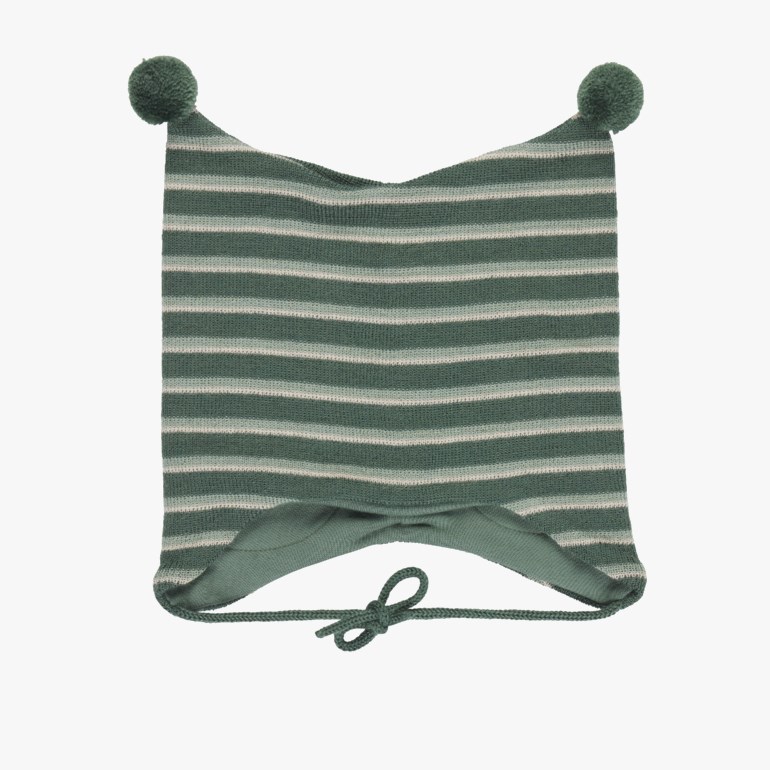 Stripete lue i behagelig ullblanding med innvendig jerseyfôr i bomull og vindstopper for ørene. De reflekterende trådene i duskene sørger for ekstra god synlighet.