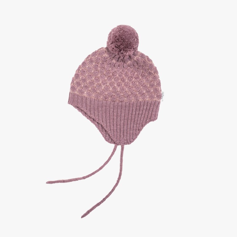 Eksklusiv og silkemyk ull-lue til baby av 100% merinoull i mønsterstrikket kvalitet.