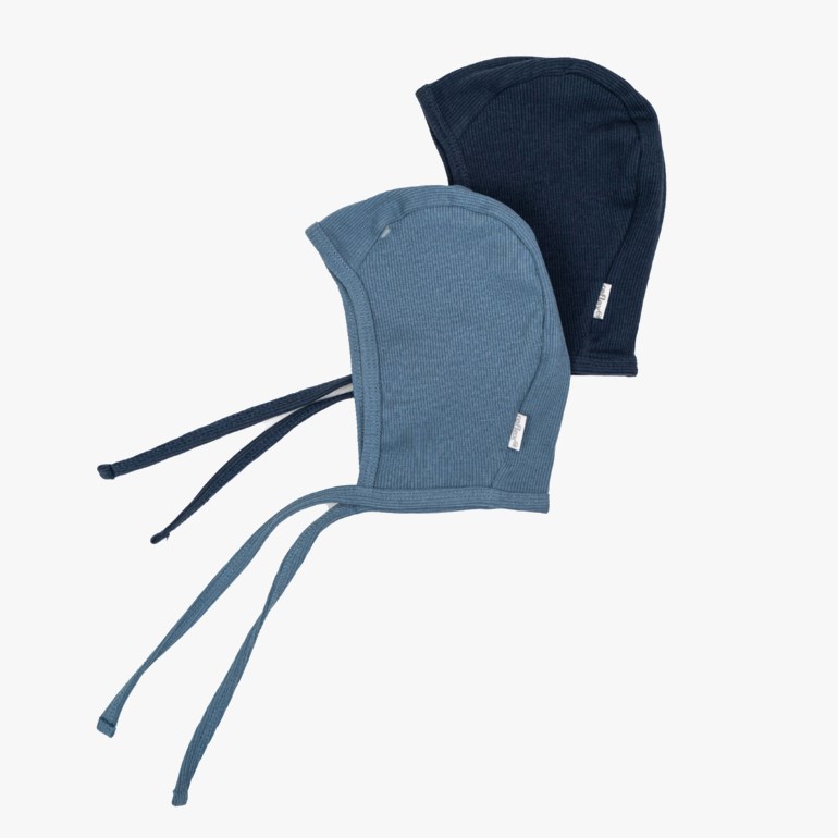 Myk og lett ribbestrikket hjelmlue laget av 100% økologisk bomull. Leveres som 2-pakning.