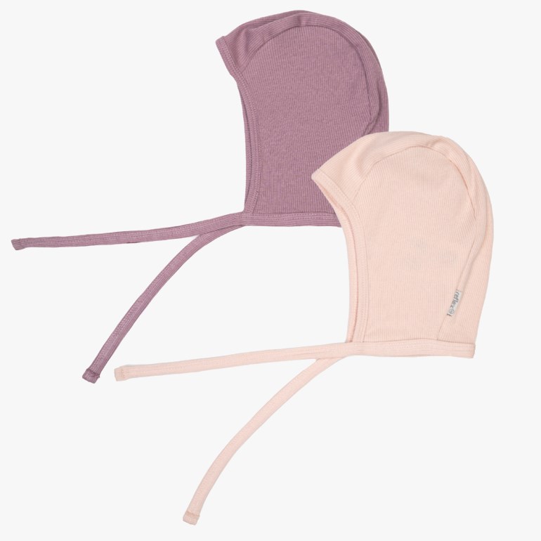 Myk og lett ribbestrikket hjelmlue laget av 100% økologisk bomull. Leveres som 2-pakning.