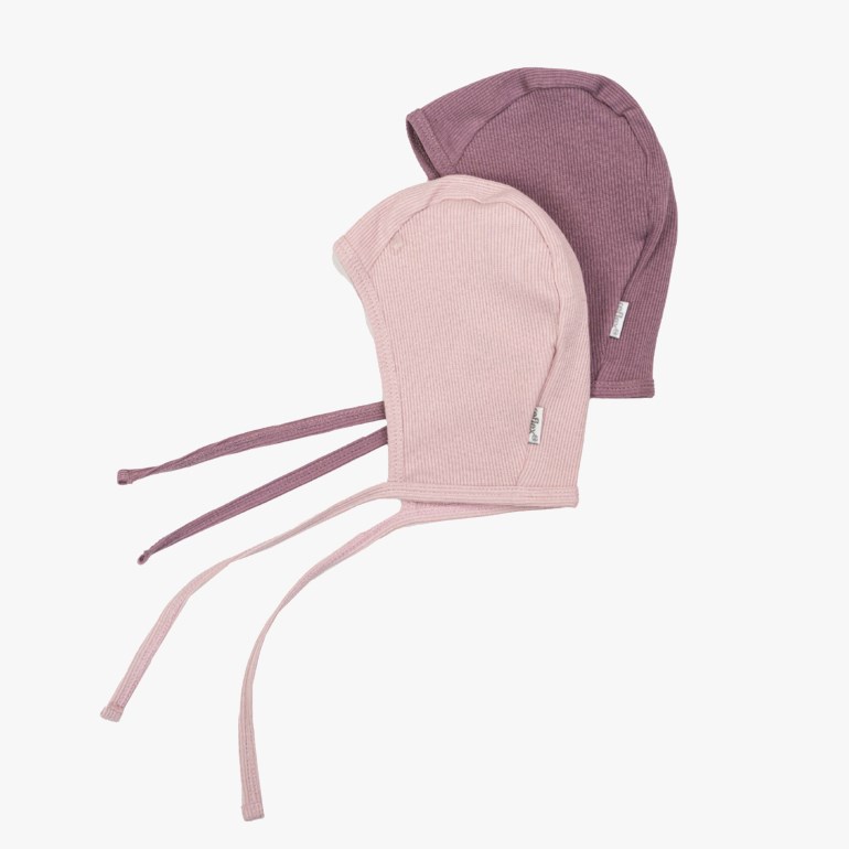 Myk og lett ribbestrikket hjelmlue laget av 100% økologisk bomull. Leveres som 2-pakning.