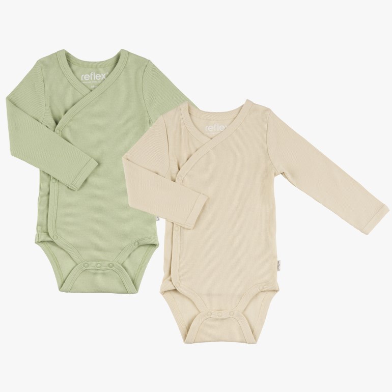 Topakning ribstrikket omslagsbody i 100% myk, økologisk bomull.