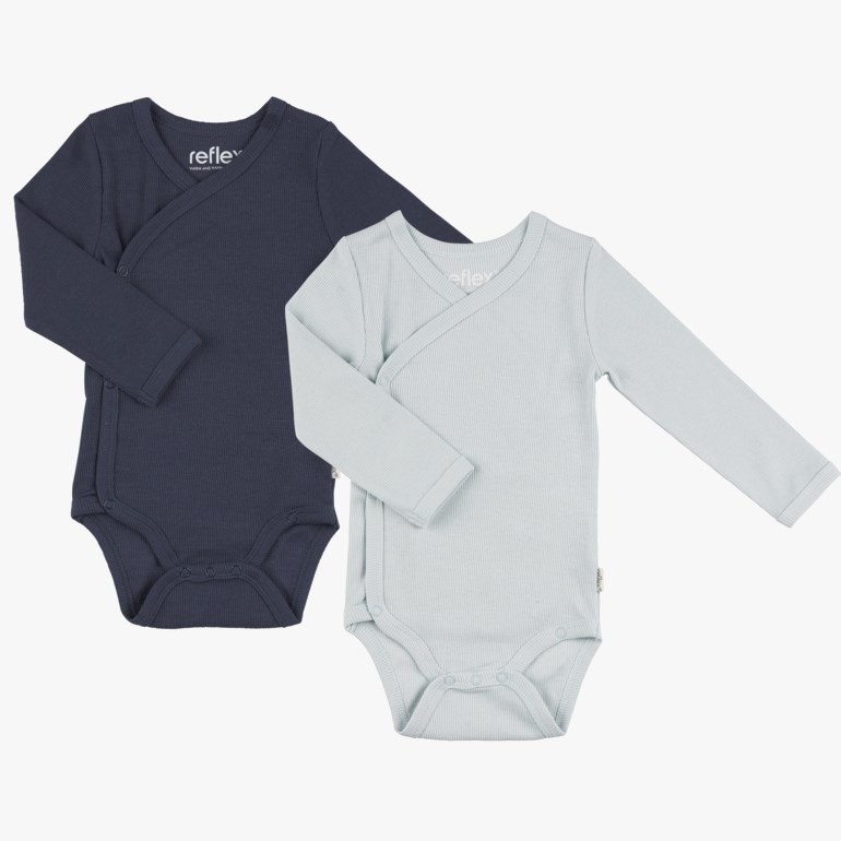 Topakning ribstrikket omslagsbody i 100% myk, økologisk bomull.