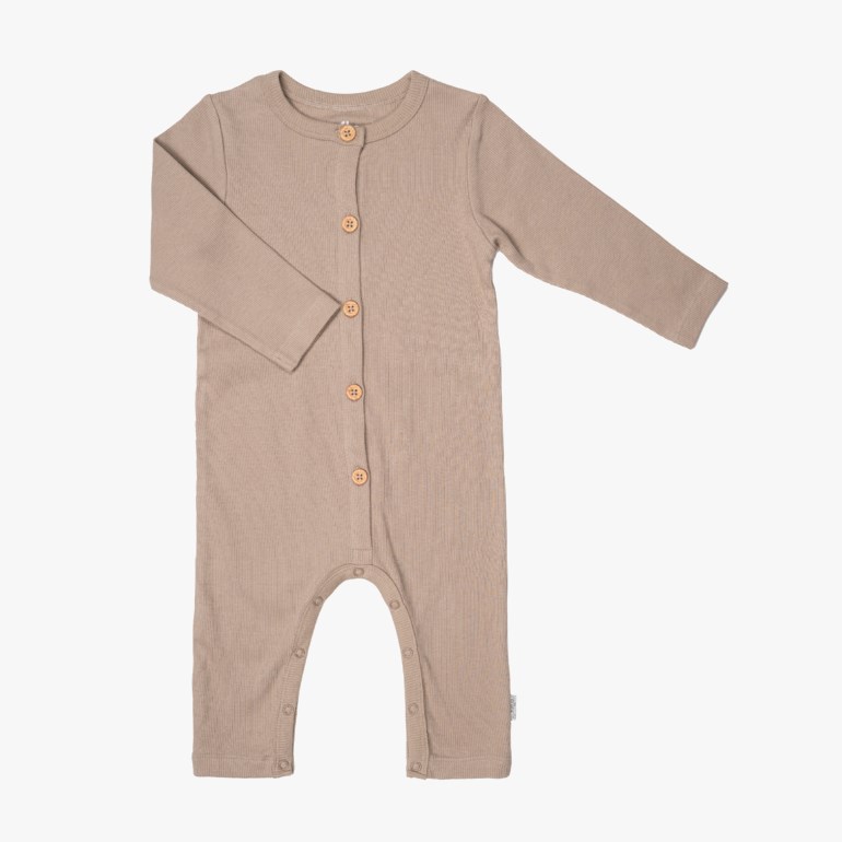 Praktisk og behagelig heldress til den minste. Ribbestrikket, lett bomullskvalitet med god stretch som gir optimal bevegelsesfrihet og komfort. Knappeåpning i front.