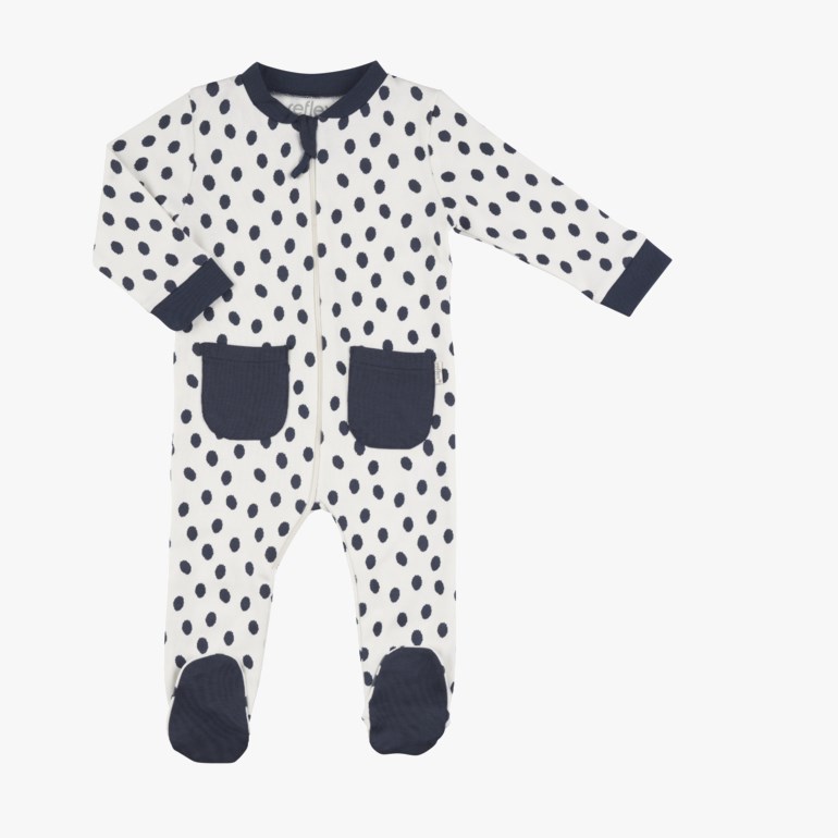 Myk sparkedrakt med hel fot i 100% myk, økologisk bomull. Åpning med glidelås i front og ned i ene foten. Små pyntelommer i front. Kommer i 3 fargevarianter. GOTS & Økotex-sertifisert produkt uten skadelige kjemikalier eller allergifremkallende stoffer. Str. 50 cm nyfødt – 74 cm 9 mnd. Materiale: 100% økologisk bomull. Vaskeanvisning: Maskinvask 30 grader. For å ivareta både plagget og miljøet så godt som mulig, anbefaler vi å minimere antall vask så mye man kan. Vask gjerne av flekker med en klut og heng plagget til lufting når nødvendig. Dette vil forlenge levetiden på plagget, minimere energibruk samt skåne miljøet for unødvendig utslipp.