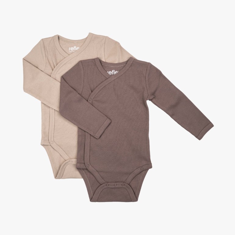 Topakning ribstrikket omslagsbody i 100% myk, økologisk bomull.