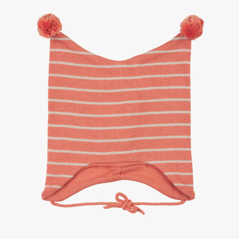 Stripet lue i strikket bomullskvalitet med innvendig myk jersey-lining. Innsydde vindstoppere i øreklaffene, holder barnet behagelig varmt og beskytter mot vind. Reflekstråder i duskene for bedre synlighet. Snøring som gjør at luen sitter ekstra godt. Produktet er Økotex- og OCS-sertifisert, og uten skadelige fargestoffer eller allergifremkallende kjemikalier. Str 43-45cm 0-1 år – 51-53cm 2-5 år. Materiale: Ytterstoff: 100% økologisk bomull, Lining: 97% økologisk bomull, 3% elastan. Vaskeanvisning: Maskinvask 40 grader. For å ivareta både plagget og miljøet så godt som mulig, anbefaler vi å minimere antall vask så mye man kan. Vask gjerne av flekker med en klut og heng plagget til lufting når nødvendig. Dette vil forlenge levetiden på plagget, minimere energibruk samt skåne miljøet for unødvendig utslipp.
