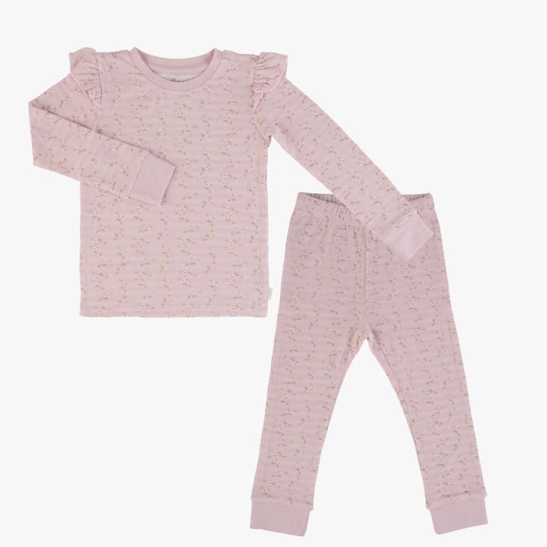 Supermyk og deilig pyjamas bestående av langermet trøye og bukse, laget av økologisk bomull og bambusviskose. Helprintet mønster med rysjer på skuldre. Tosidig, mykt materiale med 50/50 økologisk bomull og bambusviskose. Produktet er Økotex- og GOTS-sertifisert. Str. 86-92 cm 1,5-2 år – 134-140 cm 9-10 år. Materiale: 50% økologisk bomull, 50% viskose av bambus. For å ivareta både plagget og miljøet så godt som mulig anbefaler vi å minimere antall vask så mye man kan. Vask gjerne av flekker med en klut og heng plagget til lufting når nødvendig. Dette vil forlenge levetiden på plagget, minimere energibruk samt skåne miljøet for unødvendig utslipp.