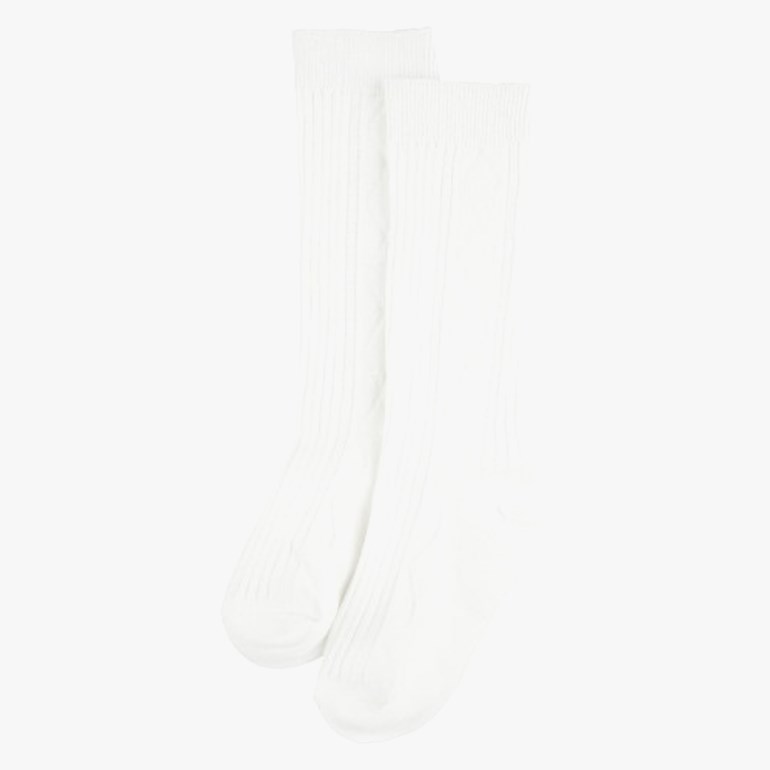 Knestrømper i myk, økologisk bomull med strikkemønster som passer flott til våre festdrakter, matroskjoler og annet festtøy.