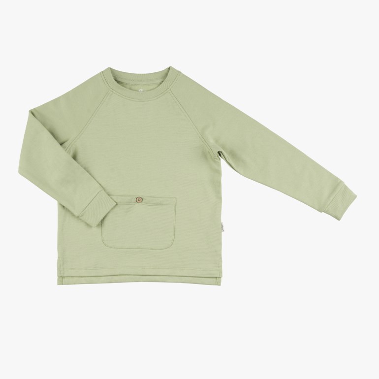 Myk og behagelig collegegenser laget av 100% økologisk bomull. Perfekt hverdagsplagg til lek, kos og aktivitet med kengurulomme i front.